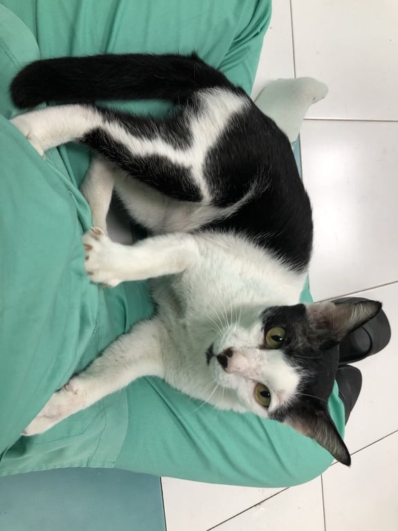 รอยตำหนิ: หัวคิ้วขาวแหว่ง หลังคอขนแหว่ง มีจุดสีดำที่จมูกและใต้ปากตัวอ้วน ชอบขู่ ชอบอยู่ที่สูง