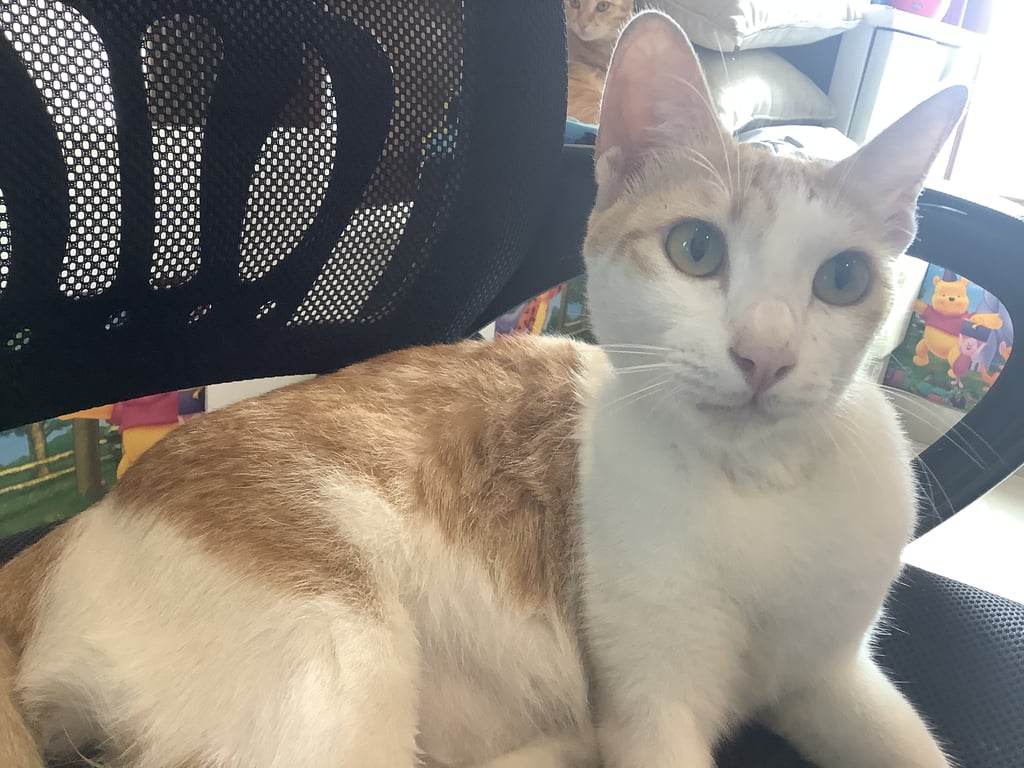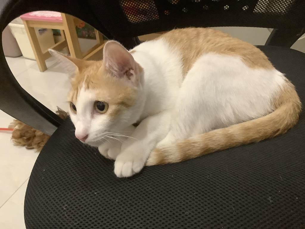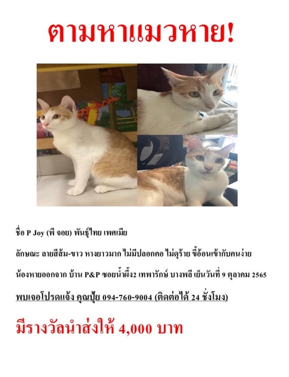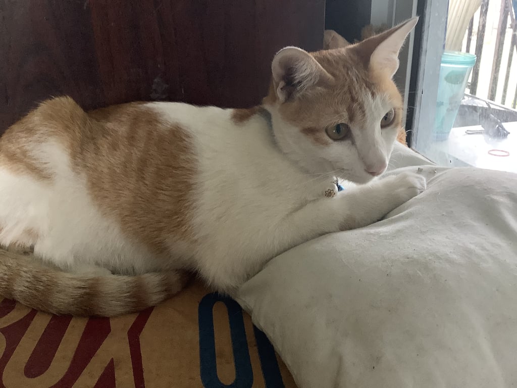 รอยตำหนิ: หางยาวมากน้องเป็นเเมวขี้อ้อน ไม่มีปอกคอ