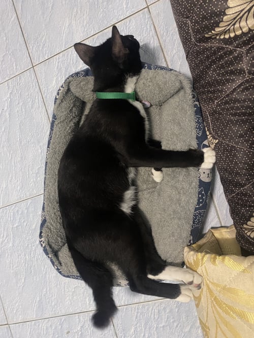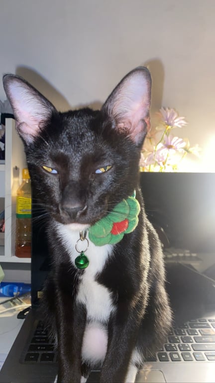 รอยตำหนิ: หางกวัก ตรงหน้ามีรอยบากขาวๆน้องมีปลอกคอสีเขียวเท้าทั้งข้างเป็นสีขาวตาเป็นสีเหลืองสังเกตตรงใต้ค่ะจะเป็นสีขาวใต้ท้องเป็นสีขาวนิสัยน้องเป็นคนกลัวเสี่ยงรถยนต์แล้วก็ถ้าน้องเจอคนที่รักแมวน้องจะอ้อนแต่น้องเป็นคนขี้กลัว