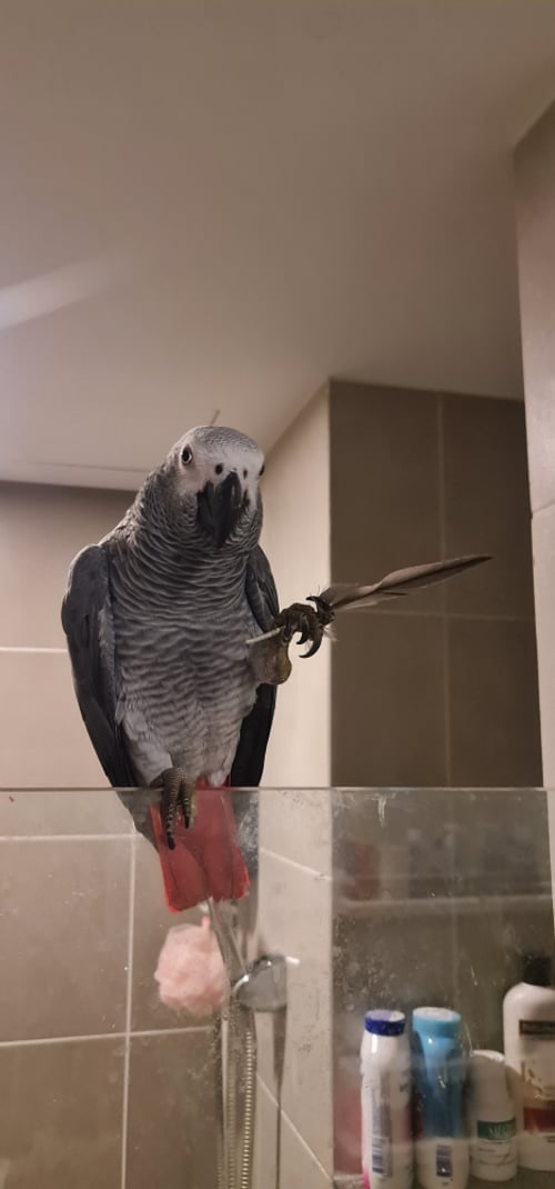 รอยตำหนิ: ห่วงปิดขาขวาสลักชื่อและเบอร์โทรนกแอฟริกันเกรย์ติดเจ้าของ เรียกชื่อจะขานรับ กับคนอื่นจะค่อนข้างตื่นกลัวและดุ อาจฉกกัดได้ เรียกชื่อตัวเองได้ชอบพูดคำว่า แม่จ๋า จุ๊บุๆ โคจิเฝ้าบ้านนะ ร้องเพลงพลิกล๊อคคริสติน่า ปีกซ้ายขนแหว่งไปสองเส้น ขนหางแหว่งหนึ่งเส้น ขนปีกซ้ายด้านหน้าไม่เต็ม ห่วงขาแบบปิดด้านขวา