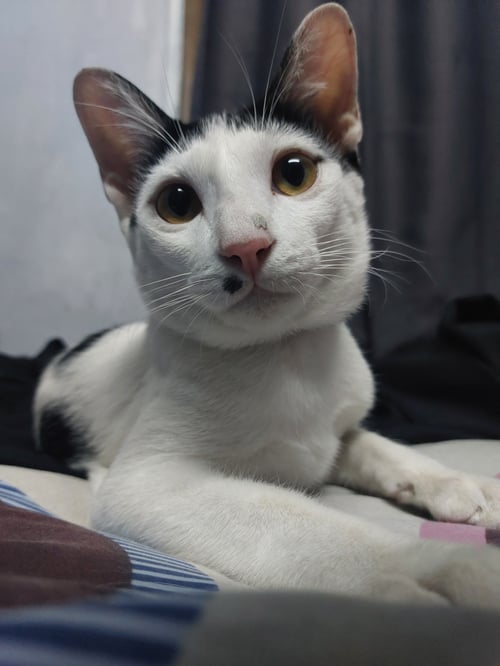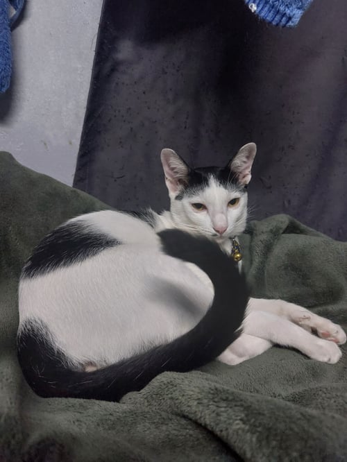รอยตำหนิ: มีไฝ1จุดเยื้องปาก ผมหน้าม้า หางสีดำสนิทกลัวเสียงดัง