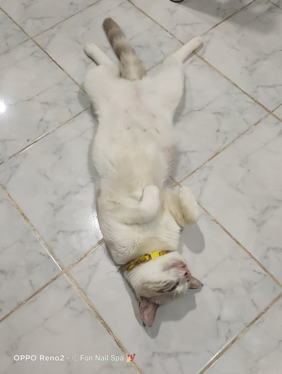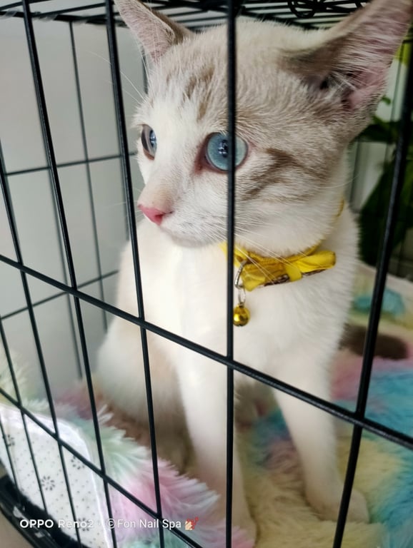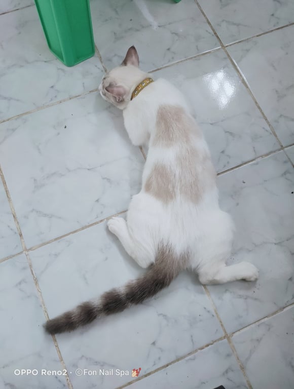 รอยตำหนิ: มีลาย บนหลัง กับ หาง น้องเป็นสีน้ำตาลน้องเป็นคนขี้กลัวคนแปลกหน้านิดหน่อยค่ะ ถ้ารู้จักกันแล้วน้องขี้อ้อนมากค่ะ