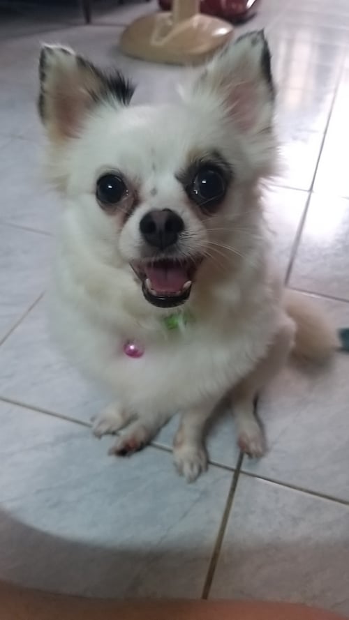รอยตำหนิ: มีคิ้วข้างซ้าย โคนหางสีดำ น้ำหนักประมาน4โลน้องชอบเห่า ไม่ชอบให้คนอื่นจับ