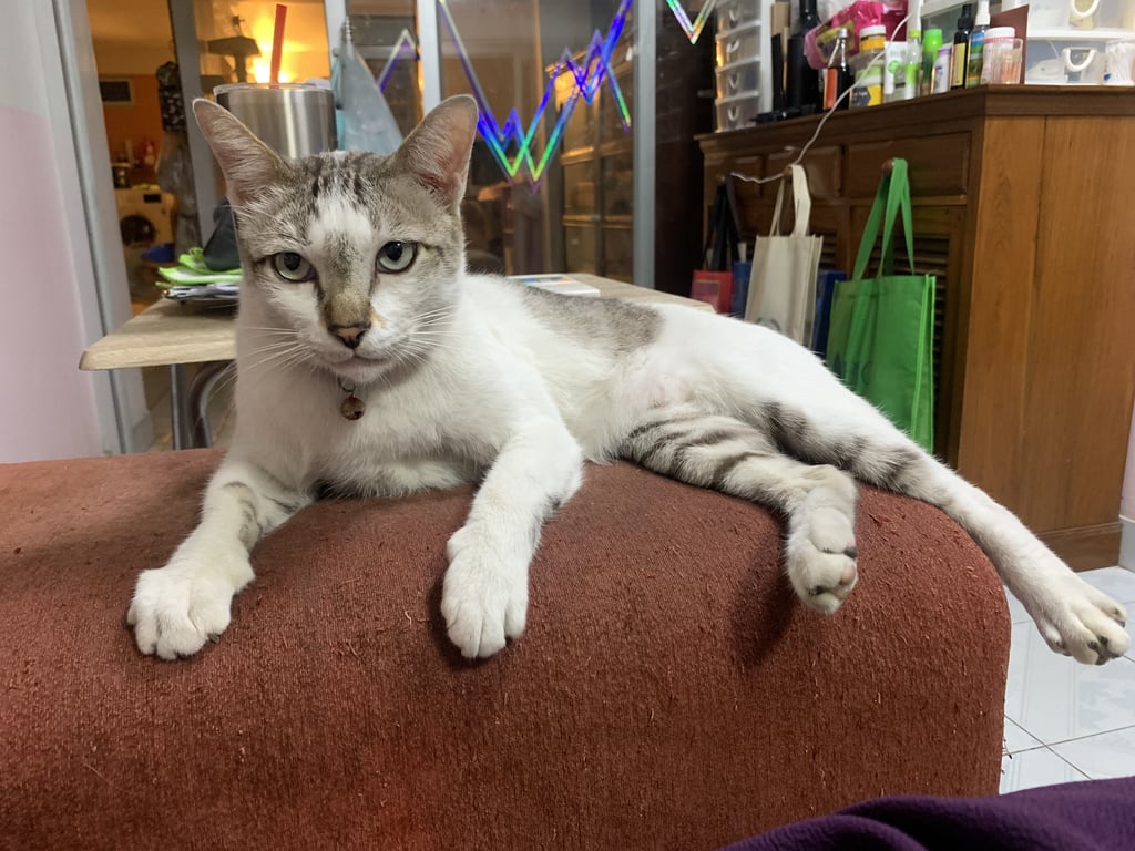 รอยตำหนิ: หางลายสลิด ปากตุ่ยๆขี้กลัว ขี้อ้อน