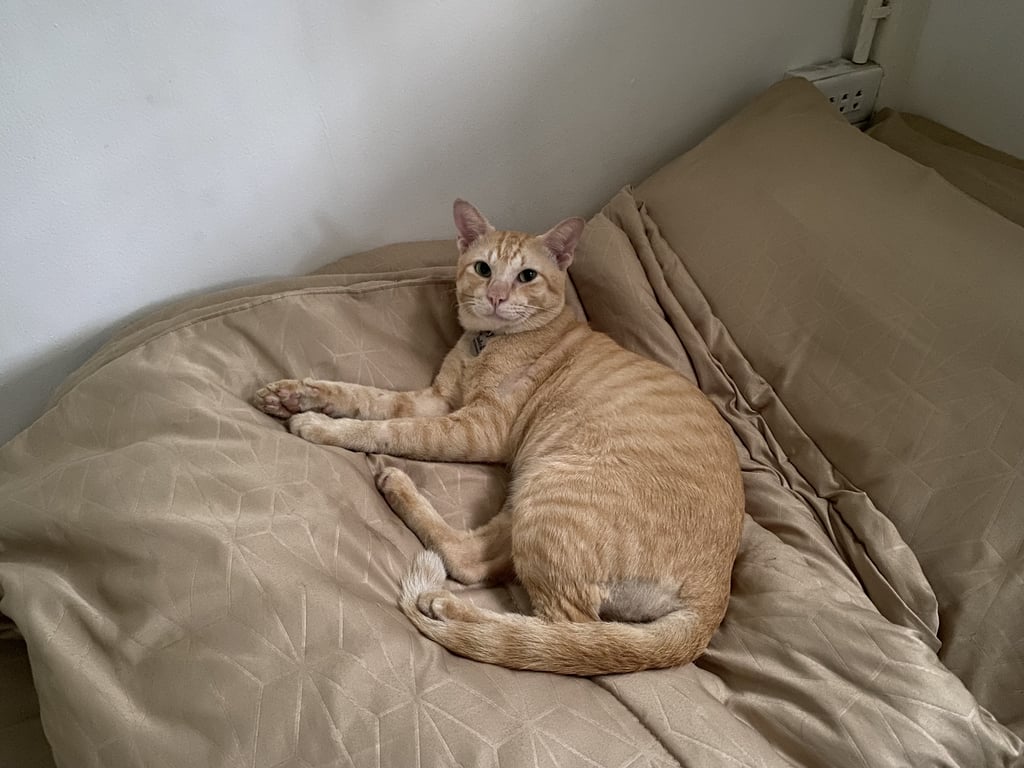 สี: แมวสีส้มทั้งตัว ไม่มีสีขาว