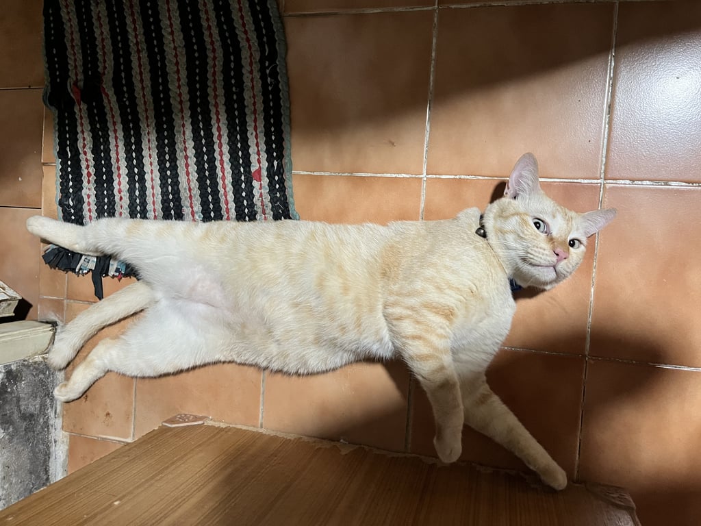 รอยตำหนิ: ตรงก้นน้อง จำไม่ได้ว่าข้างขวาหรือข้างซ้ายมีตุ่มปูดๆ(ตุ่มลักษณะเหมือนถูกอะไรต่อย แต่เป็นตำหนิเฉยๆนะคะ)น้องจะนิสัยขี้ตกใจ ขี้กลัว เสียงจะแหบๆ แต่เวลาเรียกจะรู้ว่าเราเรียก ติดเจ้าของ จำอายุน้องไม่ได้ค่ะ เพราะเก็บมาเลี้ยงค่ะ