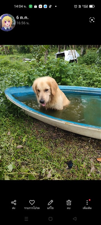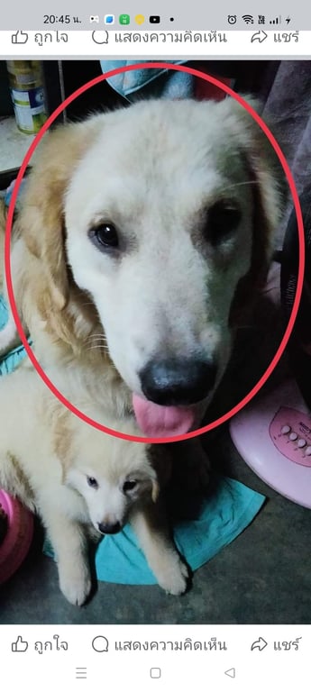 รอยตำหนิ: ตัวโต ชอบกระโดด เป็นมิตรไม่มีปลอกคอ ชอบเล่นน้ำ
