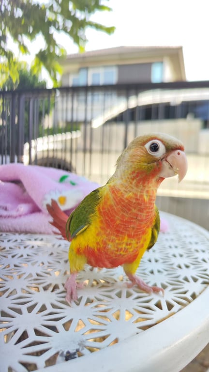 สี: ปีกเขียว ท้องส้ม
