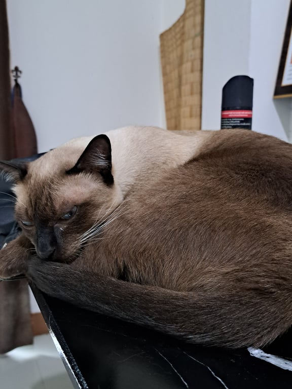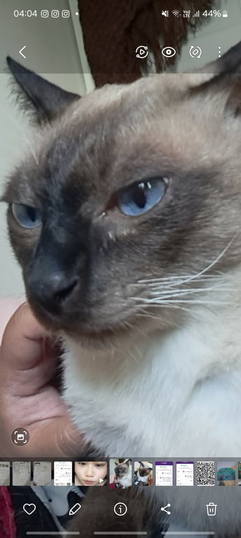 รอยตำหนิ: ใต้ตาจะมีแผลขาวๆนิดเดียวมีแผลที่ขาหน้านิดนึงตาสีตาสีฟ้า ค่อนข้างดุแต่ก็ขี้กลัว