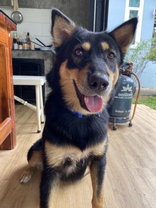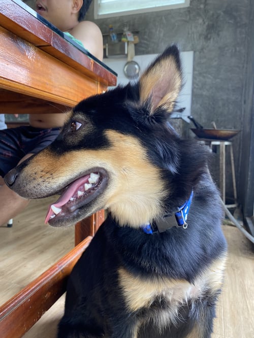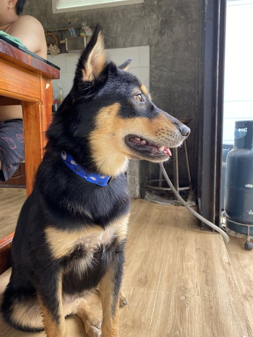 รอยตำหนิ: ปลายหางงอใจดี ชอบเข้าหาคน เป็นหมาขี้กลัว ปัจจุบันใส่ปอกคอสีแดง
