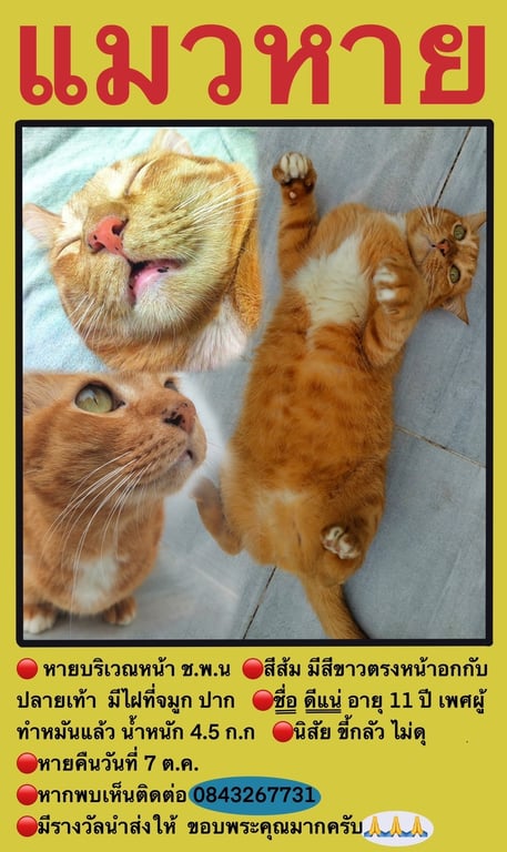รอยตำหนิ: ปลายเท้าขาวนิด ๆ มีปานเล็กๆสีดำที่ปากและจมูก หนัก5กิโลกรัม ใต้ท้องสีขาว