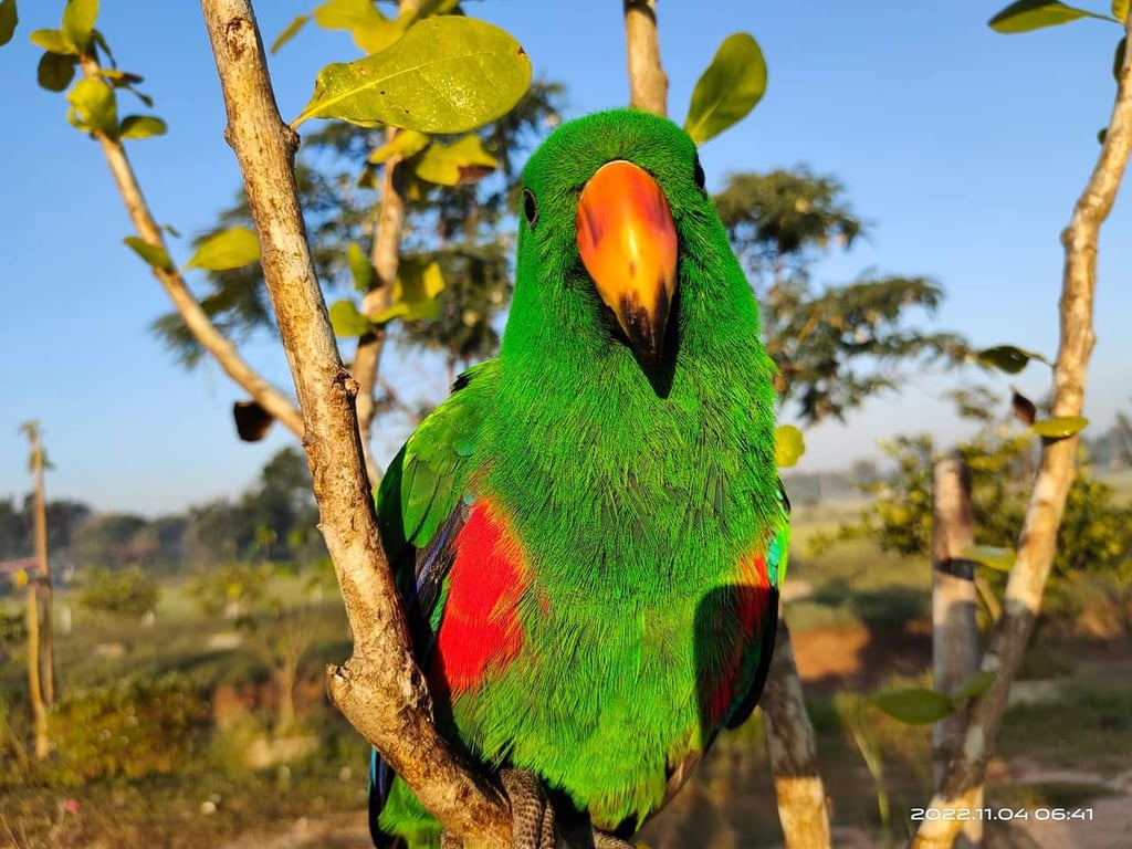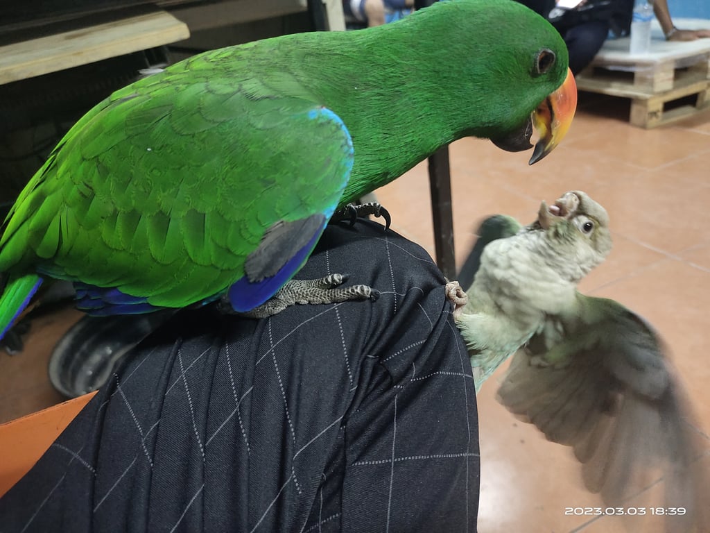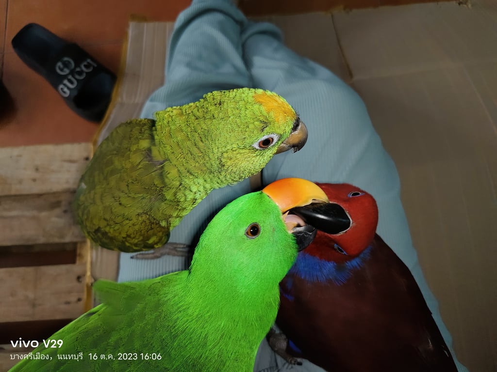 สี: เขียวใต้ปีกแดงน้ำเงิน