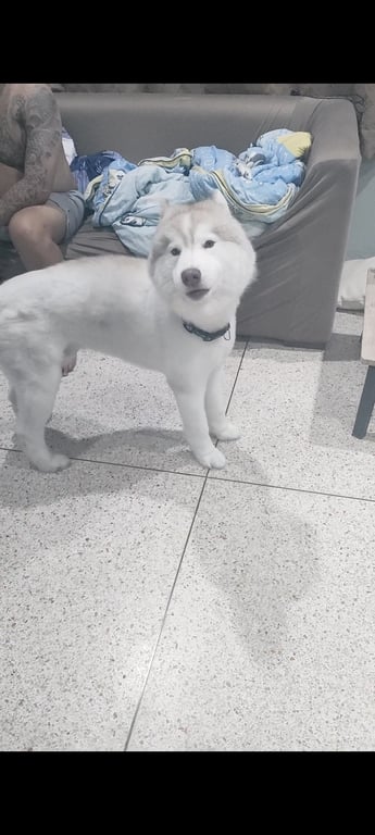 รอยตำหนิ: มีแผลที่ช่วงก้น และโคนหางปลอกคอสีเขียว ตอนนี้น้องตัดขนสั้นเพราะเป็นช่วงก้นและโคนหาง