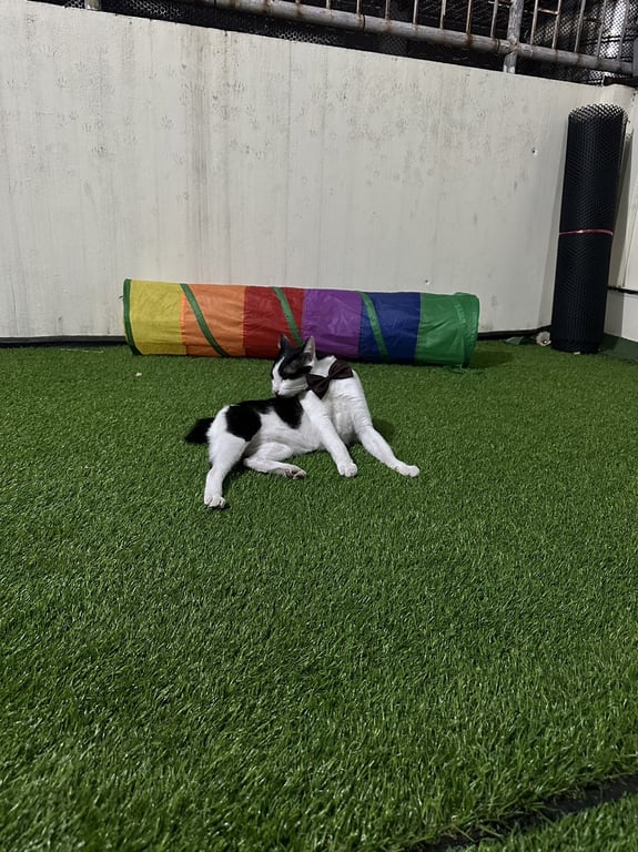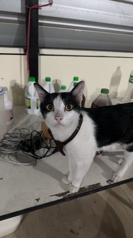 รอยตำหนิ: หางกุด มีรอยเเผลที่จมูก ไม่มีปลอกคอกลัวคน
