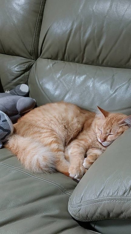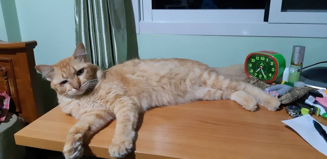 รอยตำหนิ: ตาทั้ง 2 ข้างไม่เท่ากัน หางฟูชอบนอนบนหลังคาบ้าน กินอาหารเม็ด ชอบเนื้อปลาทอด ปลาทู