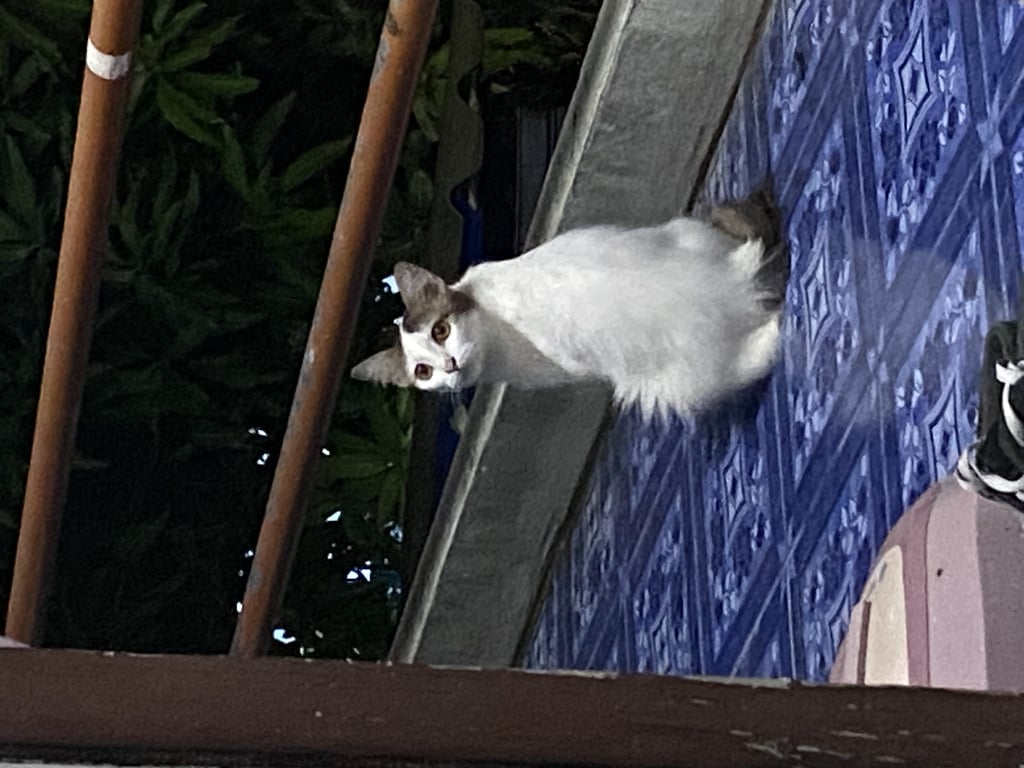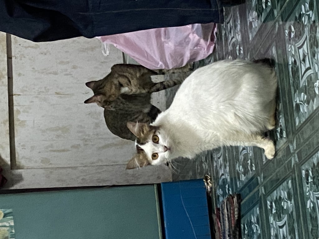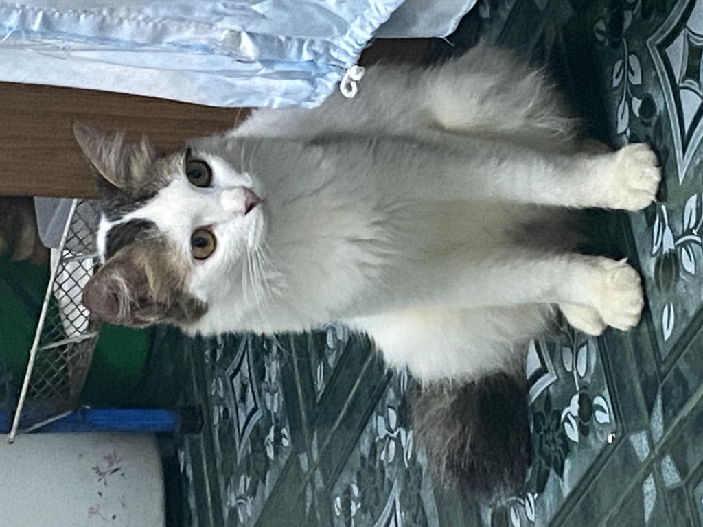 รอยตำหนิ: หางเป็นตะขอน้อง ค่อนข้างอ้วนสีขาวขนฟู น้องพึ่งคลอดลูกมา