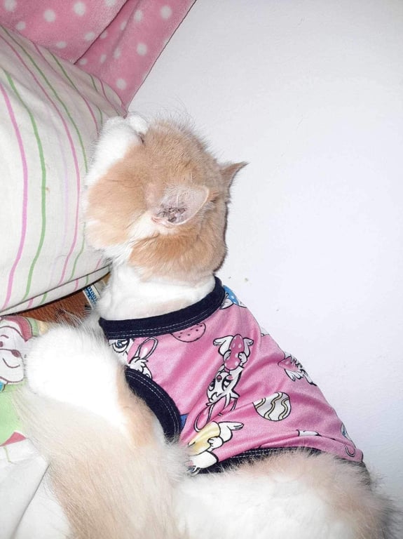 รอยตำหนิ: คนยนหลังจะสั้น เพราะไถขนน้องออก น้องจมูกสีซีดเพราะป่วยนิสัย ติดคนมาก ไม่ดุ ไม่กัด อุ้มได้ น้องเข้าหาคนเก่ง เลยทำให้น้องหายไปกับคนบ่อยเวลามีคนมาหา ที่บ้าน สามารถอุ้มได้น้องเป็นนิ่ว กับภูมิแพ้ต้องกินยา รักษา