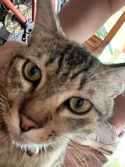 รอยตำหนิ: มีรอยแผลที่แก้มข้างขวาใส่ปลอกคอสีเขียวไม่มีกระดิ่ง