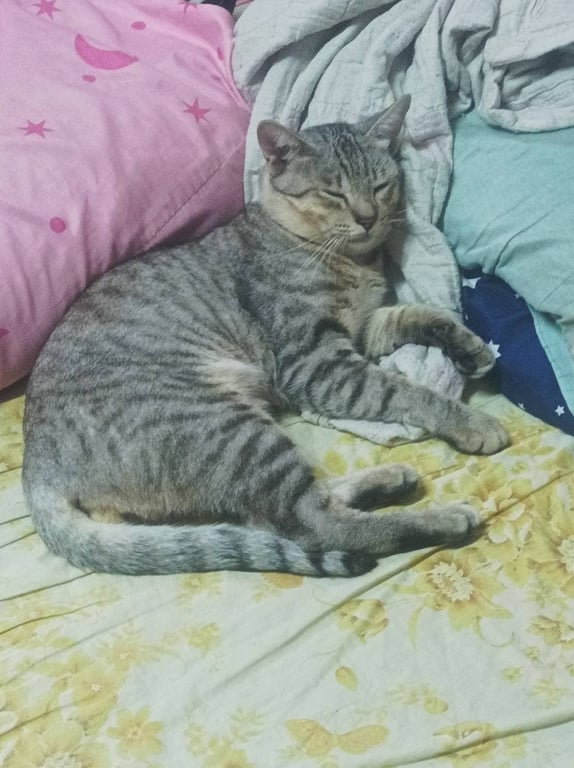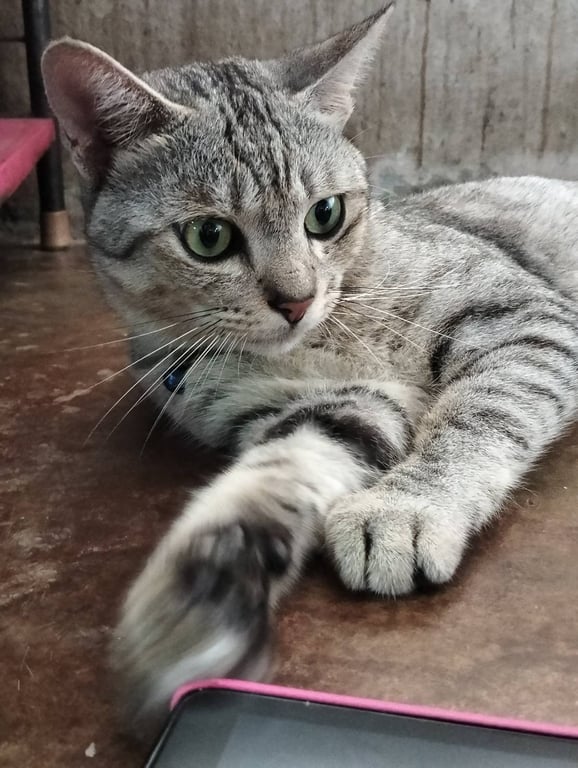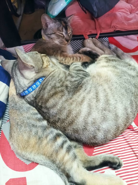 รอยตำหนิ: ใส่ปลอกคอสีน้ำเงินลายลอยเท้าแมวชอบประจบ ติดคน จับได้ทุกคนเลยค่ะ