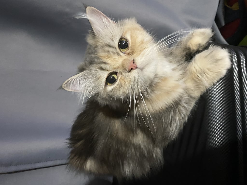 รอยตำหนิ: ตาดำน้องจะเหมือนเขๆ ข้างขวาตาจะเหมือนเจ๋บ เหมือนมีขนเข้าตลอดเวลาเข้ากับคนง่ายไม่ดุคนไม่กัด แต่ชอบขู่แมว ขี้อ้อน ชอบซุกคน