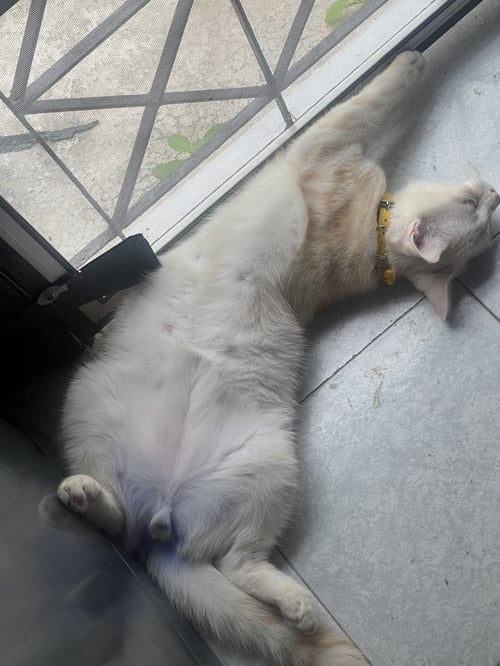 รอยตำหนิ: หางตรง จุดสังเกต มีสีม่วงติดอยู่ที่ก้น เพราะน้องพึ่งทำหมันมาน้องเลี้ยงแบบปิด100% น้องอาจจะตื่นกลัว