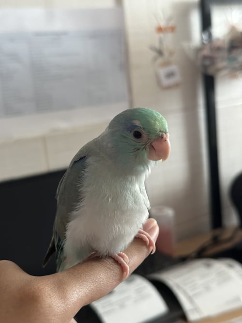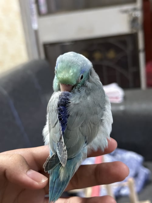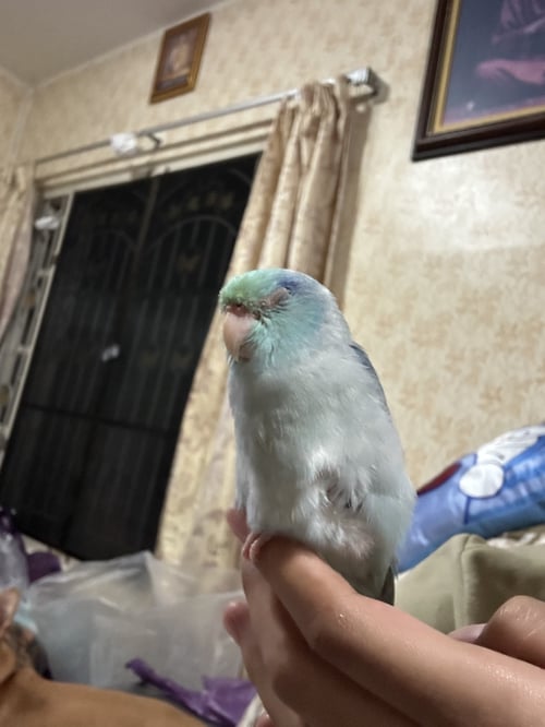 รอยตำหนิ: มีห่วงขาสีน้ำเงิน เป็นนกเชื่อง ติดคนนกเชื่อง มีห่วงขาสีน้ำเงินเข้ม พูดแม่จ๋า ร้องคุ้กกี้ได้