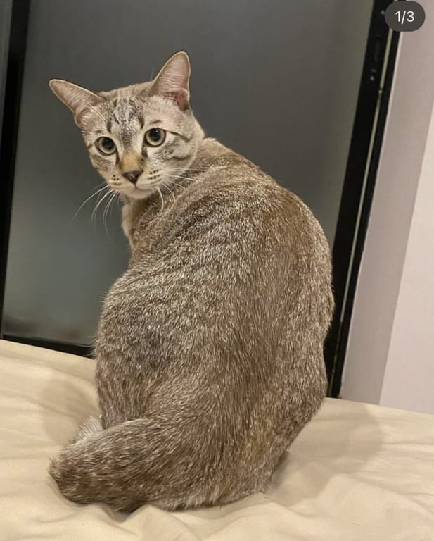 รอยตำหนิ: หางกุดสีสลิดเทา หางสั้น ทำหมันแล้ว ขี้กลัวคน
