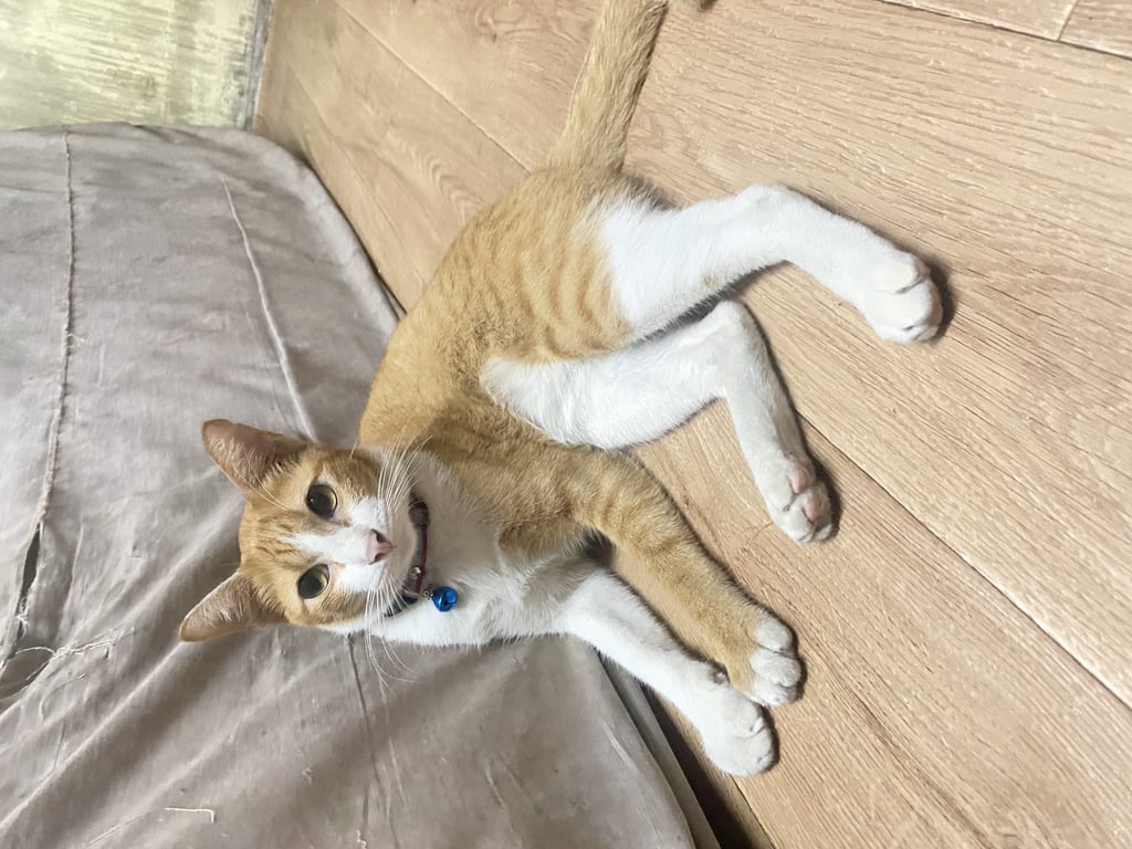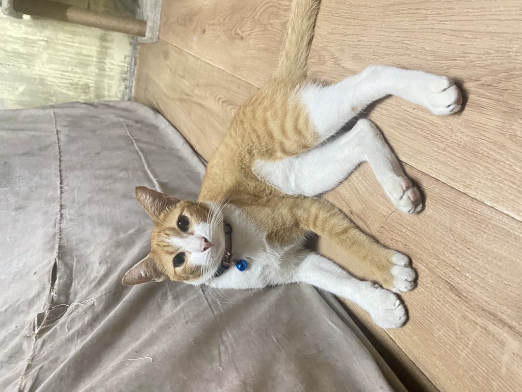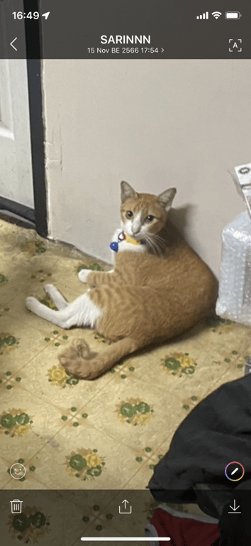 รอยตำหนิ: หางขอด มีปลอกคอสีชมพูเหลืองขี้ตกใจ ชอบแอบ ชอบมุด