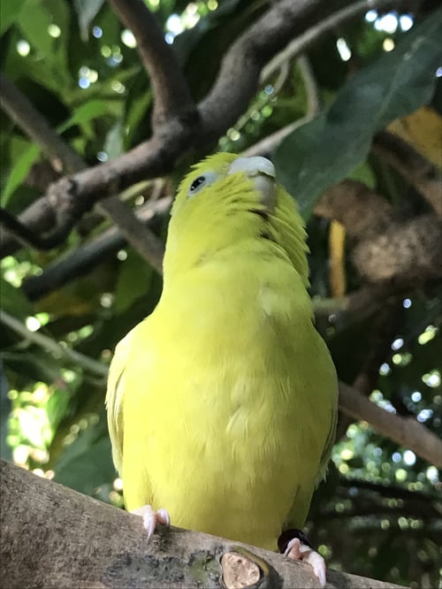 รอยตำหนิ: ตรงเล็บสีดำ มีห่วงขา(แต่ไม่มีเบอร์) งอยปากสั้นติดคน ชอบกัดเล็บ ชอบเกาะไหล่ เกาะหัว เป็นนกนิ่งๆ ไม่ชอบใครกวนมาก ชอบหลับ ชอบนอน