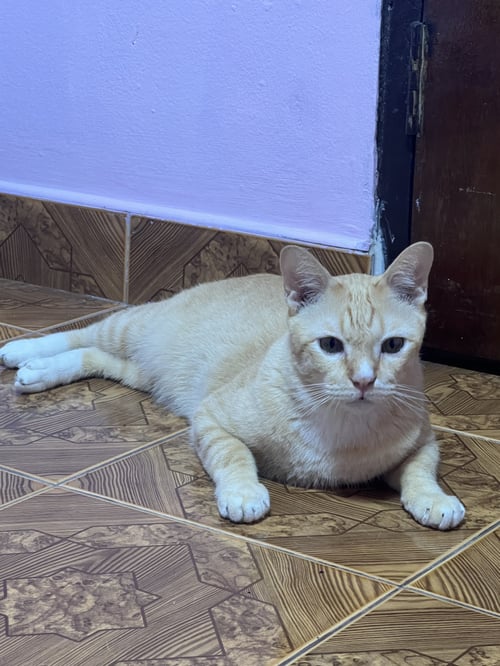 รอยตำหนิ: มีรอยด่างที่ขาวที่จมูก หางกุด/หางกวัก ใส่ถุงเท้าสองขาหลังเป็นแมวที่กลัวเสียงฝน กลัวเสียงรถขยะมากๆ ถ้าฝนจะตก ทองจะคลานต่ำๆและวิ่งหาที่ปลอดภัยทันที เป็นแมวที่ใจดี ขี้กลัว แต่จับได้ ไม่เคยกัด ไม่เคยข่วนเลย