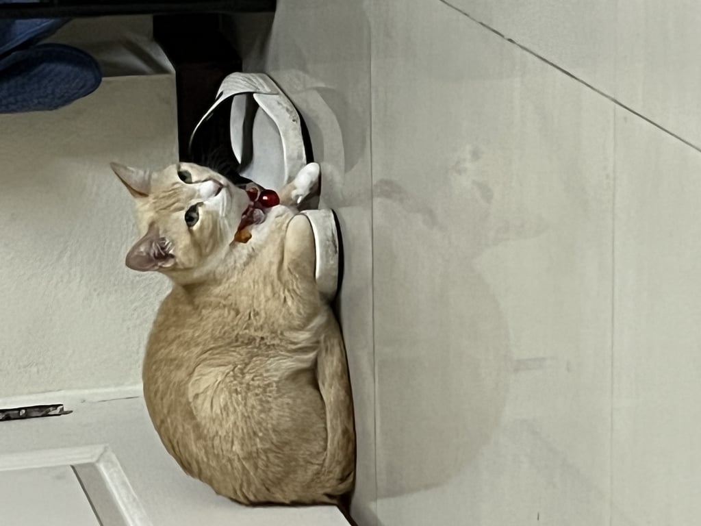 รอยตำหนิ: ใส่ถุงเท้าสีขาวปลอกคอสีแดง
