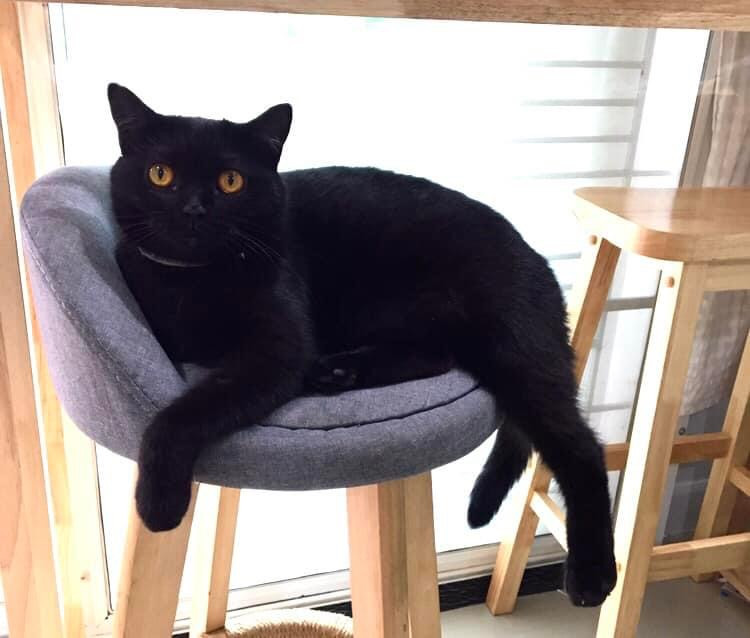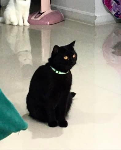 รอยตำหนิ: ตาสีส้ม ใส่ปลอกคอสะท้อนแสงสีเขียว ขาหน้าซ้ายมีรอนขนแหว่งเล็กๆเพราะเคยผ่าตัดมดลูกอักเสบ ขนหน้าอกสีขาว3เส้น ขาหน้าขวามีขนขาว1เส้นค่อนข้างกลัวคนแปลกหน้า วิ่งหนีเก่ง จับตัวยาก
