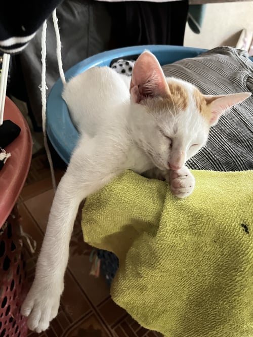 รอยตำหนิ: ลำตัวสีขาว หน้าสีส้ม หางสีส้มขี้กลัว