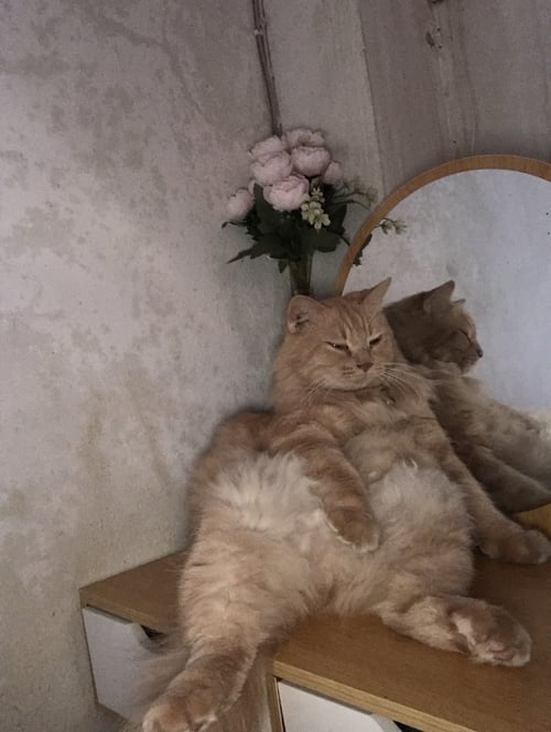 รอยตำหนิ: ไม่มีปลอกคอ2เส้นสีส้ม พ่วงด้วยปลอกคอสีขาว นิสัยคุ้นชินกับคน ตัวใหญ่ ไม่ชอบส่งเสียงร้อง