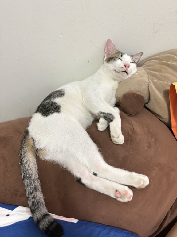 รอยตำหนิ: น้องเดินบิดๆเนื่ิองจากเคยผ่าตัดขานอนไม่ดื้อ ไม่ก้าวร้าว ออกแนวนิ่งๆติ๋มๆ