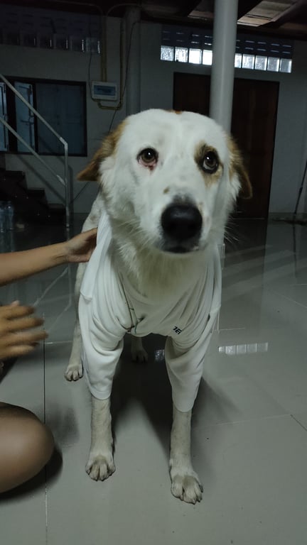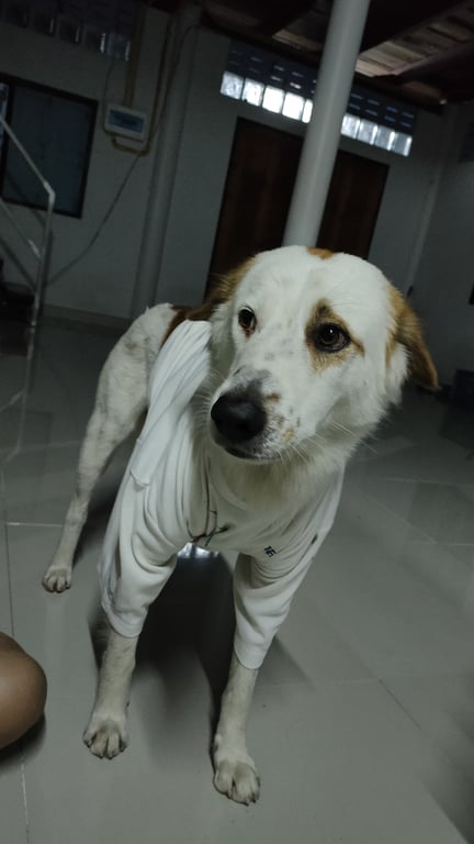 รอยตำหนิ: บริเวณตา มีสีน้ำตาลข้างนึงขนฟู สีขาวลายน้ำตาล ตรงตาแฉะข้างนึง ตัวผอมๆ