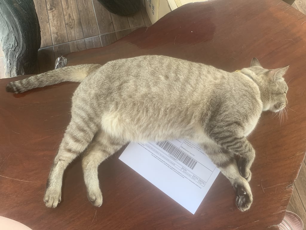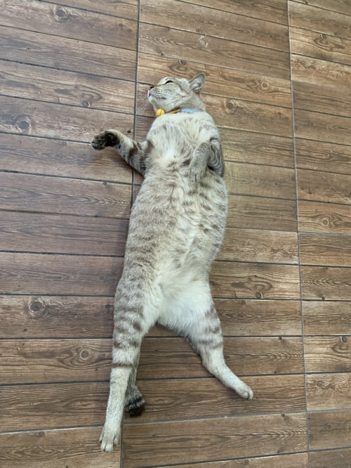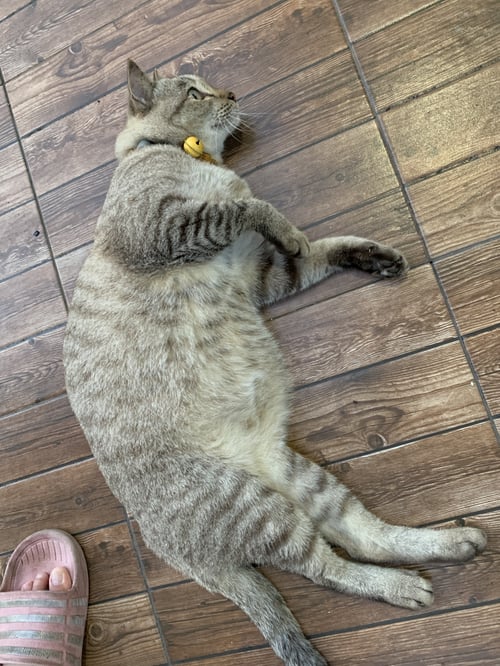 รอยตำหนิ: หางตรง อ้วนมาก หูซ้ายแหว่งนิดเดียวขี้อ้อนมาก ชอบหงายพุง อ้วน เชื่องสุดๆ