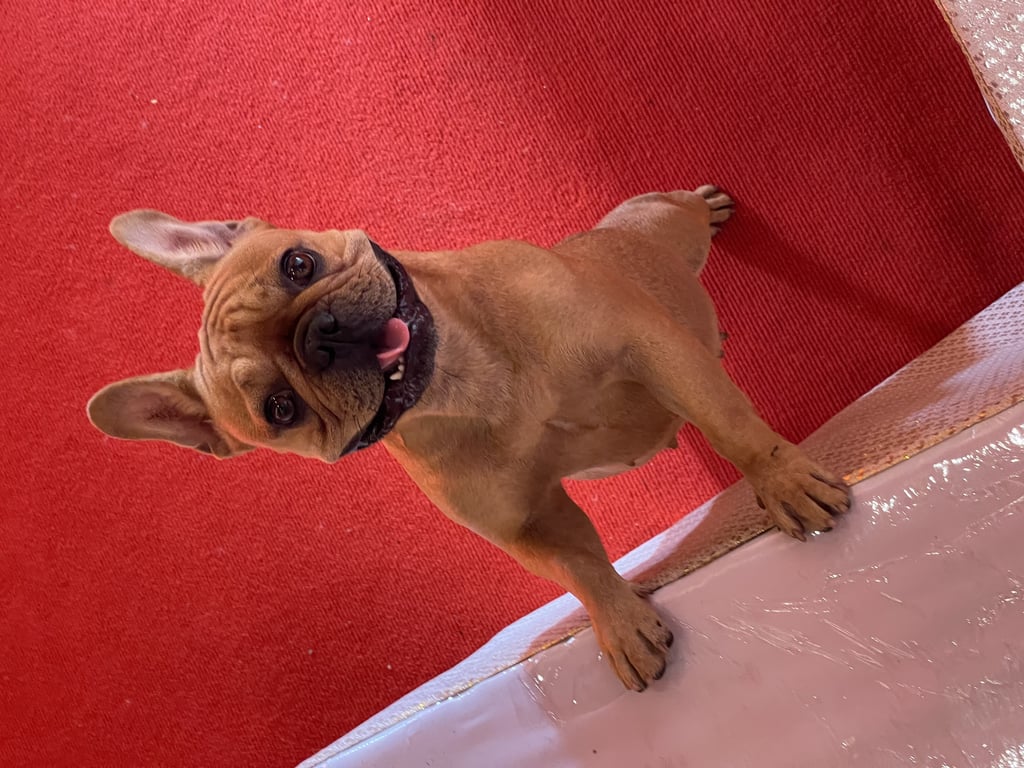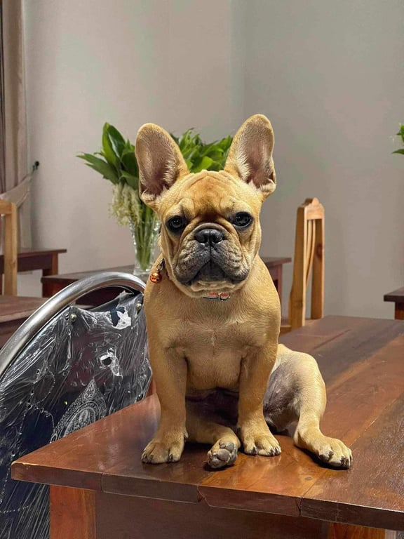 รอยตำหนิ: หมาเฟร้นบลูด็อกแม่ลูกอ่อนนมยานตัวผอมสีน้ำตาลนิสัยขี้อ้อนเข้ากับคนง่าย