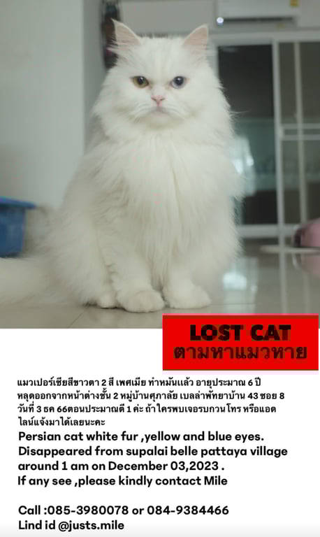 รอยตำหนิ: ตาข้างขวาสีเหลือง ซ้ายสีฟ้าค่ะ