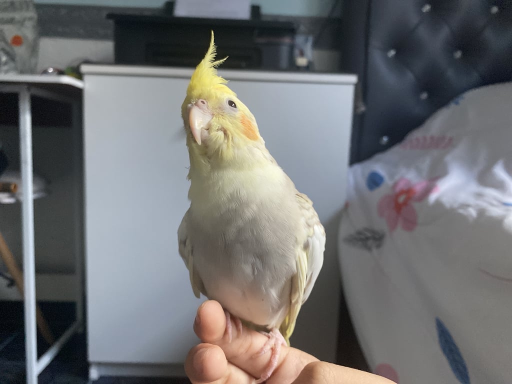 สี: ลำตัวมีสีเทาอ่อน ด้านหลังมีลายสีขาว เเก้มสีส้ม ไม่มีห่วงขา