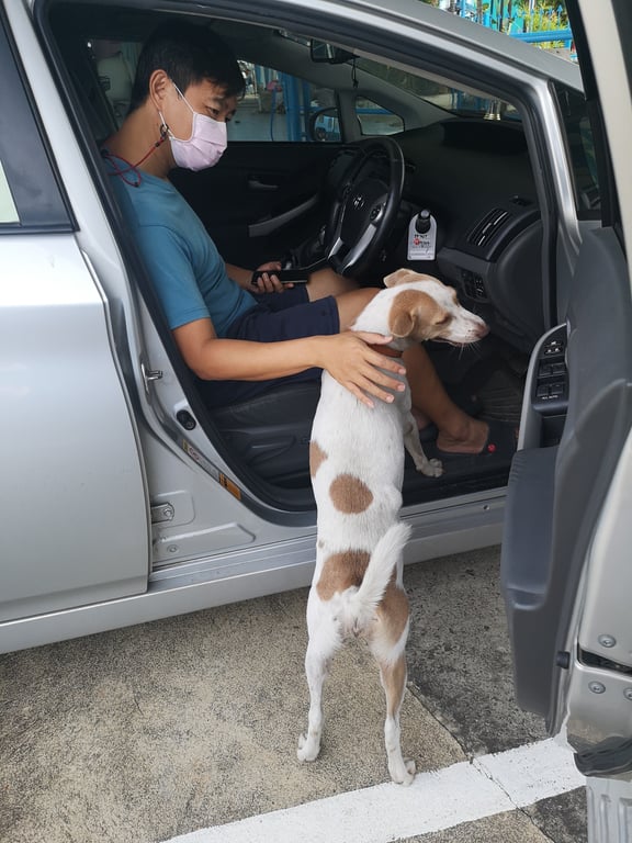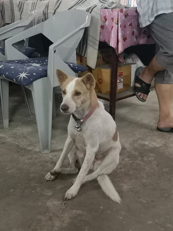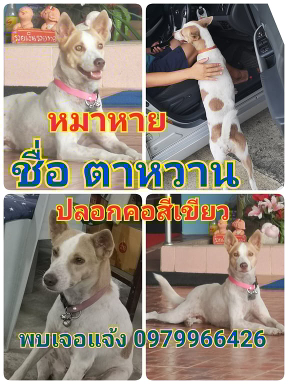 รอยตำหนิ: ปลอกคอเขียว มีก้อนขนคุดปูดนูนแถวสะโพกขวา