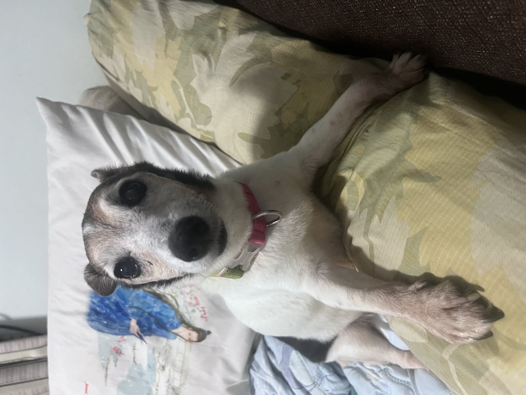 รอยตำหนิ: ตาฝ้า ไม่ค่อยมีแรง สวมปลอกคอสี เขียวชมพูอายุเยอะแล้ว ไม่เฮ่า นอนทั้งวัน