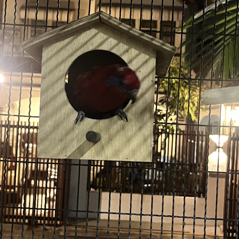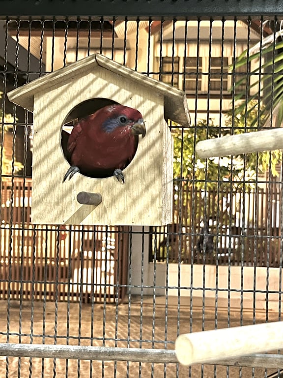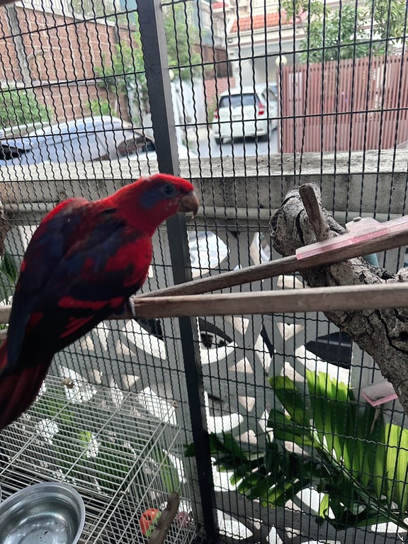 สี: แดง ปีกน้ำเงิน มีจุดน้ำเงินตรงตา
