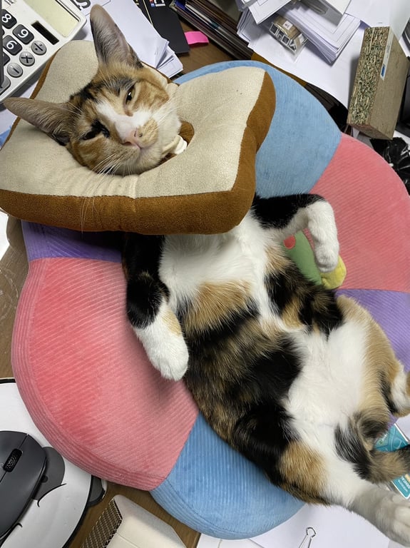 รอยตำหนิ: มีจุดดำคล้ายไฝข้างจมูกและแต้มสีดำตรงบริเวณหัวตา ขาหน้า 2 ขามีสีดำถุงเท้าขาว