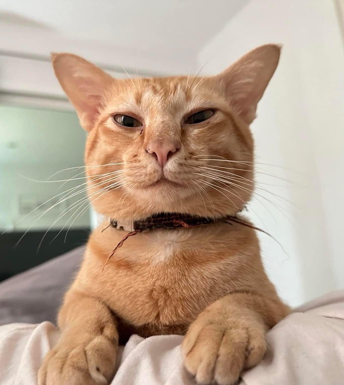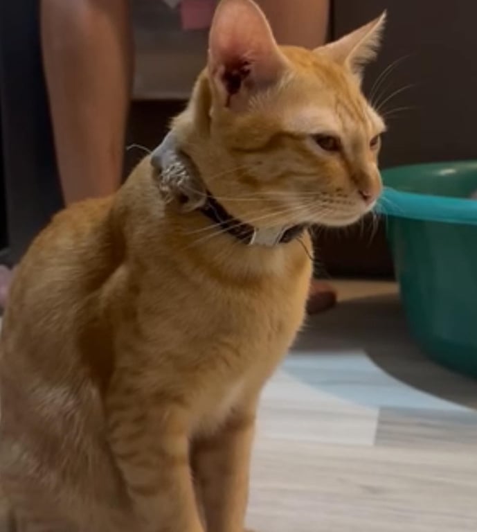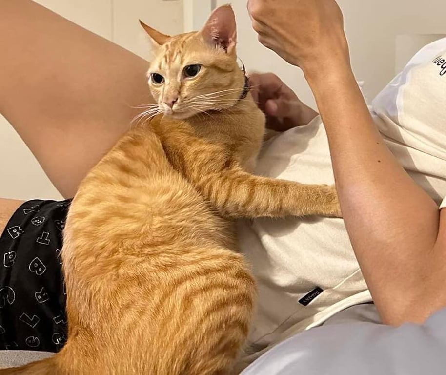 รอยตำหนิ: แมวส้ม มีเหนียง ใส่ปลอกคอรูปปลา หางยาวเชื่อง เรียกชื่อก็วิ่งมาเลย ชอบนอนให้เกาพุงค่ะ