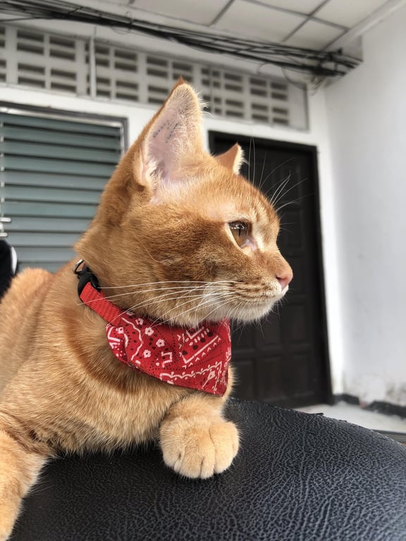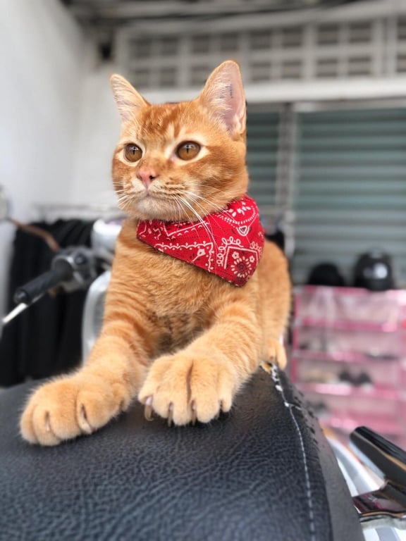 รอยตำหนิ: ทำหมันมีรอยสักที่หูตัวM 2ข้าง มีใฝ่ที่ปาก ปลอกคอสีแดง