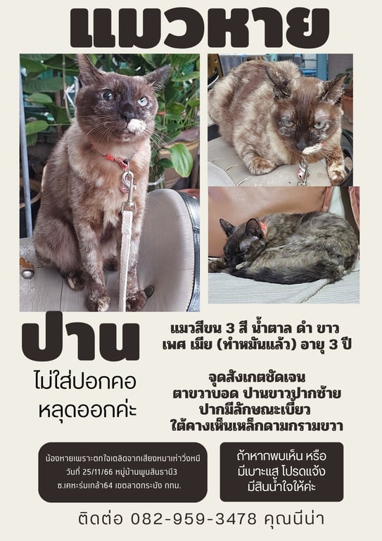 สี: แมว3 สี สีน้ำตาล ขาว ดำ