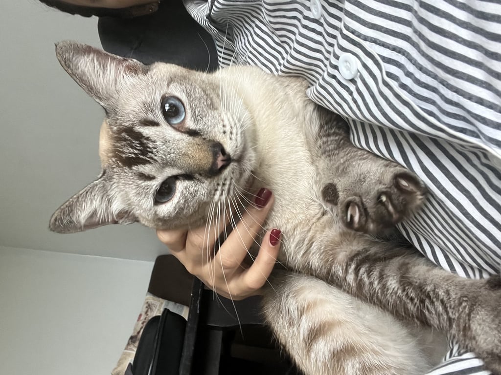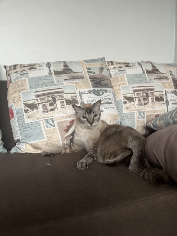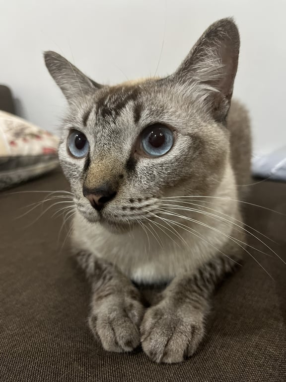 รอยตำหนิ: ขาและหางลายสลิด ตาฟ้ามีเพื่อนแวะมาที่บ้านน้องหายไป ได้ยินข้างบ้านบอกว่าไปกัดกับตัวอื่นแล้วหานไปได้ 7 วันแล้วค่ะ