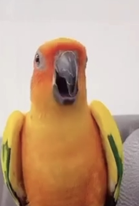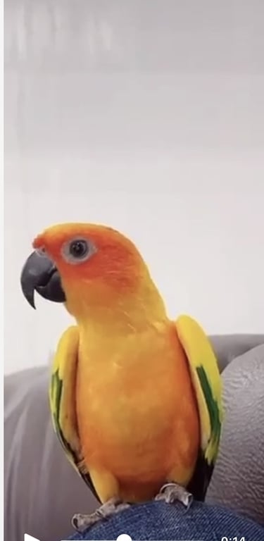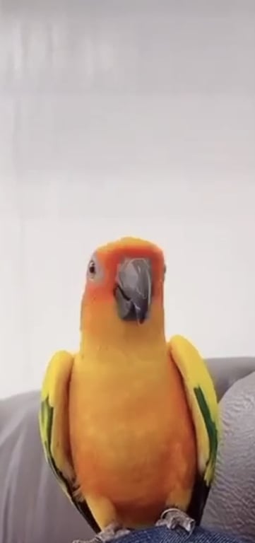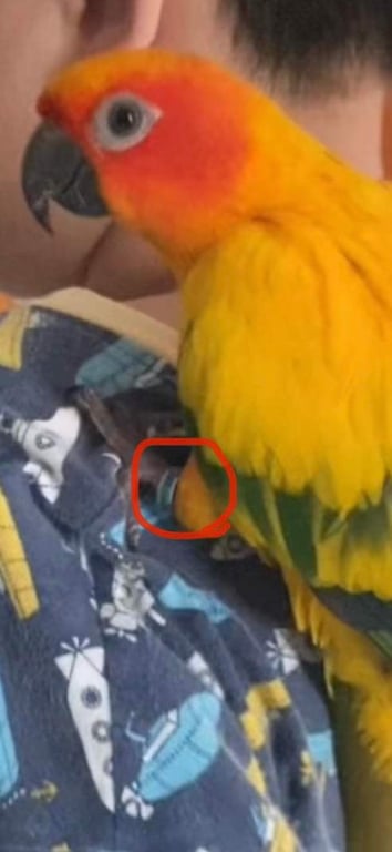 รอยตำหนิ: มีขนที่เป็นแหลมๆที่คอ ใส่ห่วงที่ขาสีฟ้าขอบห่วงสีขาว ปากมีรอยแตกแบบในรูปเลยน้องแอบดุนิดนึงค่ะ ถ้าเจอคนไม่รู้จัก ร้องเสียงดัง เต้นได้