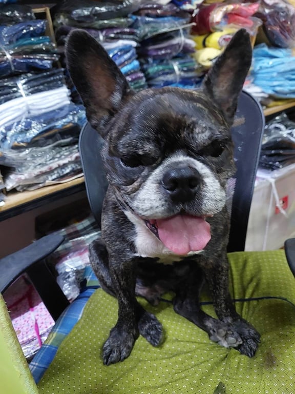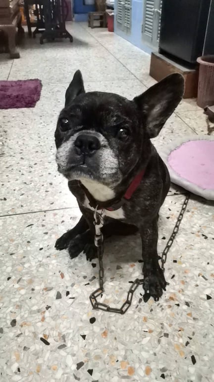 รอยตำหนิ: ไม่มีหาง ขาสั่น ขี้ตาเต็มลูกตาใจดี ไม่เห่า ตามองไม่ค่อยเห็น มีขี้ตาตลอดเวลา ขาหลังสั่นๆไม่ค่อยมีแรง เดินช้า อ้วนท้วน